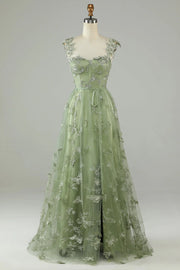 Green Long Tulle Prom Dress with 3D Butterflies Beautiful Formal Dress Charming Evening Party Dress