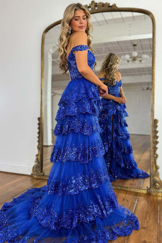 Regular price $191.49 USDRegular priceUnit price / per$271.49 USDSale price $191.49 USDSaleStunning Glitter A-Line Off The Shoulder Long Tiered Prom Dress