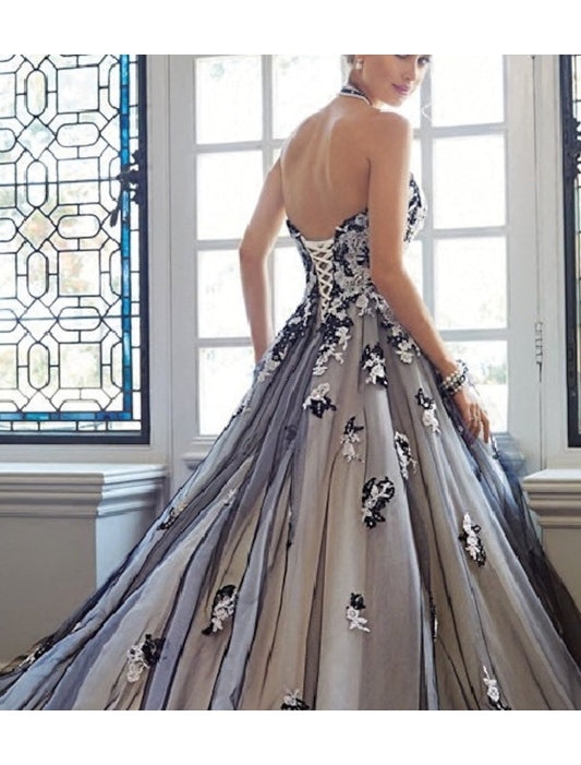 Ball Gown Prom Dresses Vintage Dress Graduation Tea Length Sleeveless Strapless Tulle with Appliques