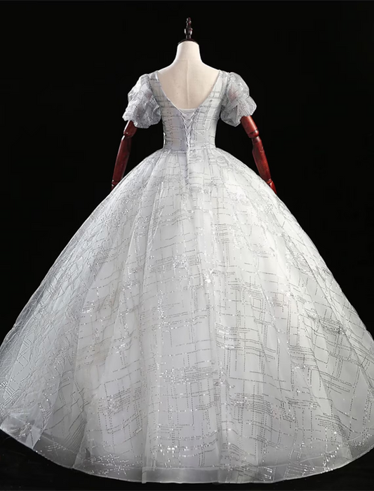 Ball Gown Quinceanera Dresses Princess Dress Performance Floor Length Short Sleeve Square Neck Tulle