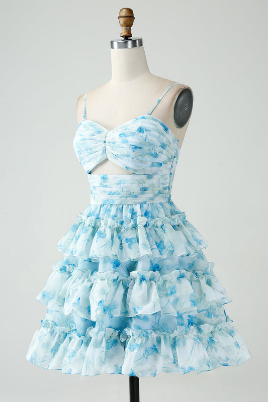Regular price $169.99 USDRegular priceUnit price / per$249.99 USDSale price $169.99 USDSaleBlue Flower A-Line Tiered Pleated Short Homecoming Dress Beautiful