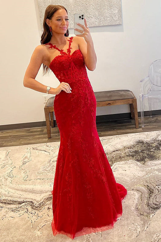Regular price $129.99 USDRegular priceUnit price / per$209.99 USDSale price $129.99 USDSaleHot Mermaid Halter Lace Prom Dresses With Appliques Floor Length Beautiful