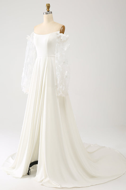 Regular price $218.99 USDRegular priceUnit price / per$298.99 USDSale price $218.99 USDSaleIvory A Line Off The Shoulder Bridal Dress With 3D Butterflies Long Sleeves Sexy