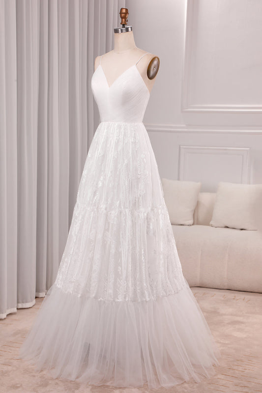 Regular price $175.99 USDRegular priceUnit price / per$255.99 USDSale price $175.99 USDSaleIvory A Line Spaghetti Straps Long Bridal Dress With Appliqued Lace V-neck