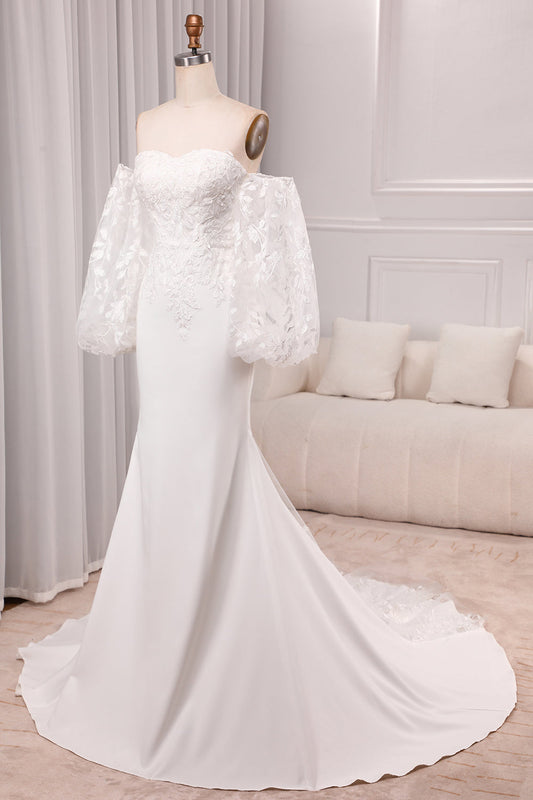 Regular price $158.99 USDRegular priceUnit price / per$238.99 USDSale price $158.99 USDSaleIvory Trumpet Sweetheart Neck Satin Bridal Dress with Lace Long Sleeves Sexy