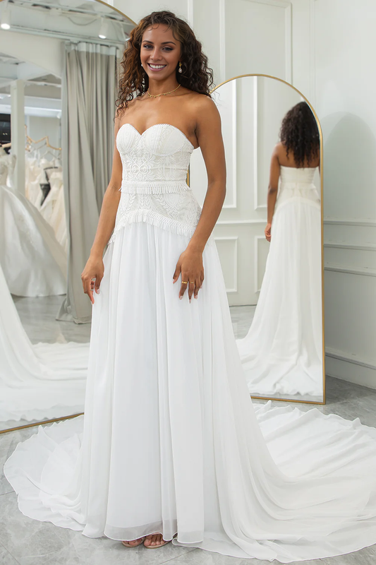 Regular price $208.99 USDRegular priceUnit price / per$288.99 USDSale price $208.99 USDSaleIvory Tulle Lace Wedding Dress A-Line Sweetheart Bridal Dress With Sweep Train Off Shoulder