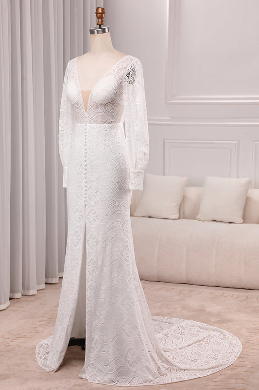 Regular price $188.99 USDRegular priceUnit price / per$268.99 USDSale price $188.99 USDSaleIvory Mermaid V Neck Sweep Train Wedding Dress with Long Sleeves Sexy