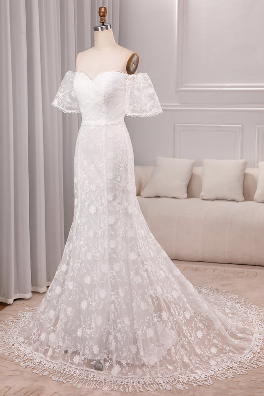 Regular price $139.99 USDRegular priceUnit price / per$219.99 USDSale price $139.99 USDSaleIvory Mermaid Sweep Train Bridal Dress With Short Sleeves Off Shoulder