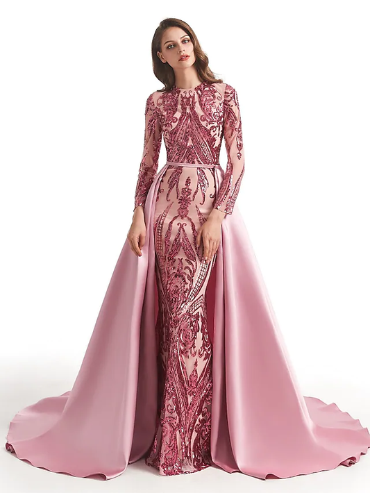 Regular price $135.90 USDRegular priceUnit price / per$215.90 USDSale price $135.90 USDSaleLuxurious Sparkle Prom Formal Evening Dress Jewel Neck Long Sleeve Detachable Sequined with Overskirt Pattern Print