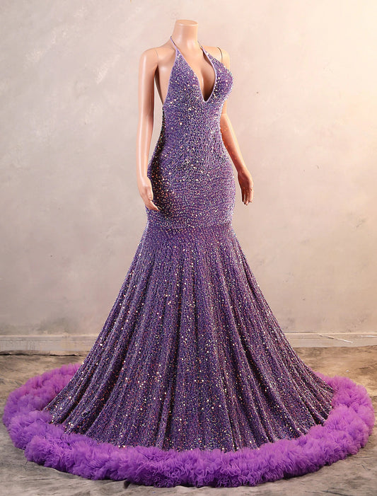 Regular price $129.90 USDRegular priceUnit price / per$209.90 USDSale price $129.90 USDSaleMermaid / Trumpet Evening Gown Sparkle & Shine Dress Formal Black Tie Sweep / Brush Train Sleeveless Halter Neck Sequined