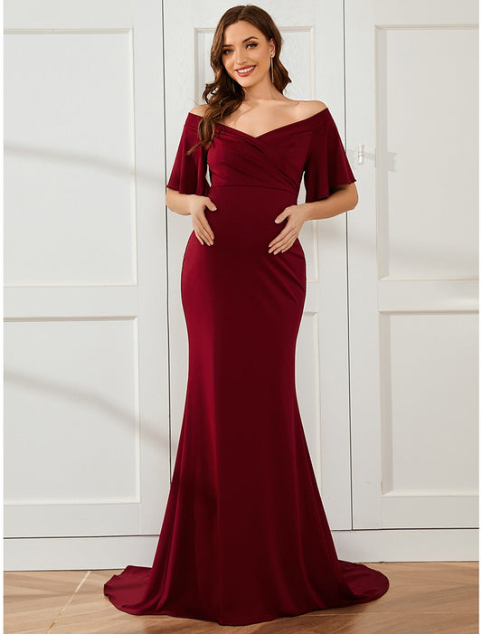 Regular price $148.99 USDRegular priceUnit price / per$228.99 USDSale price $148.99 USDSaleMermaid / Trumpet Maternity Dresses Maternity Dress Formal Court Train Short Sleeve Off Shoulder Stretch Fabric with Ruched