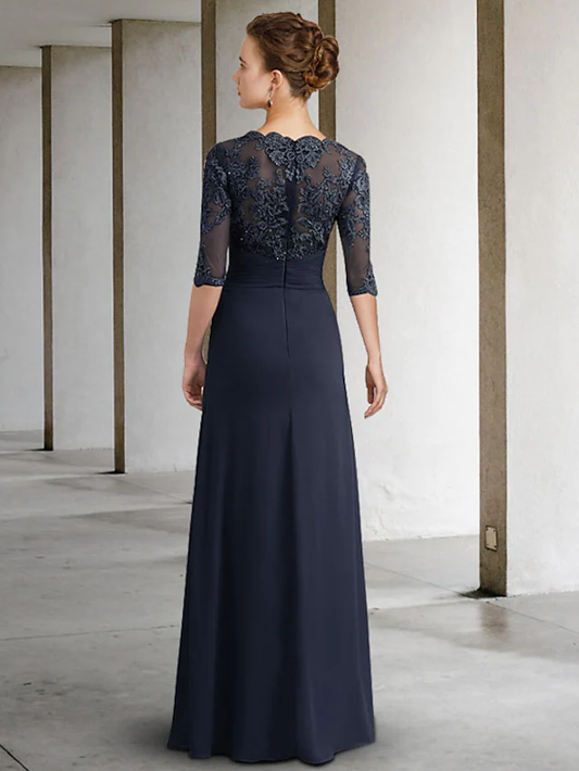 Regular price $128.90 USDRegular priceUnit price / per$208.90 USDSale price $128.90 USDSaleMother of the Bride Dress Elegant Jewel Neck Floor Length Chiffon Lace Half Sleeve with Pleats