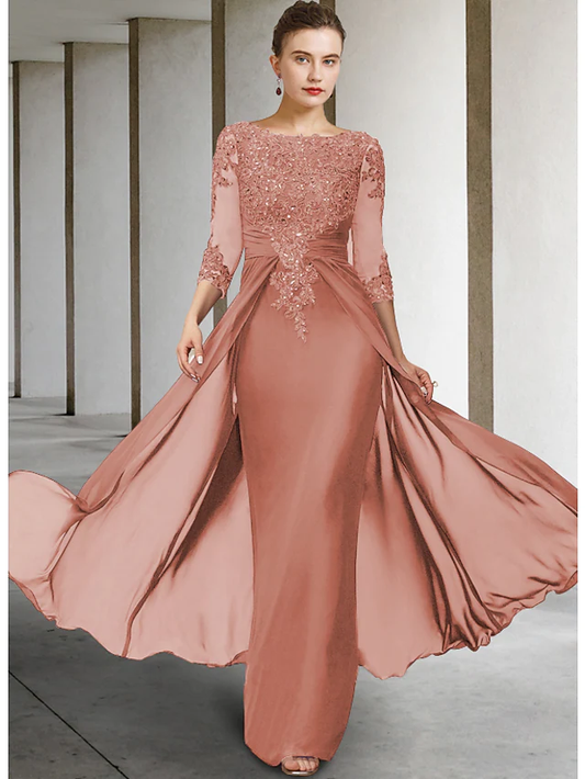 Regular price $125.99 USDRegular priceUnit price / per$205.99 USDSale price $125.99 USDSaleMother of the Bride Dresses Plus Size Curve Hide Belly Wedding Guest Party Elegant Scoop Neck Floor Length Chiffon Lace 3/4 Length Sleeve with Ruffles