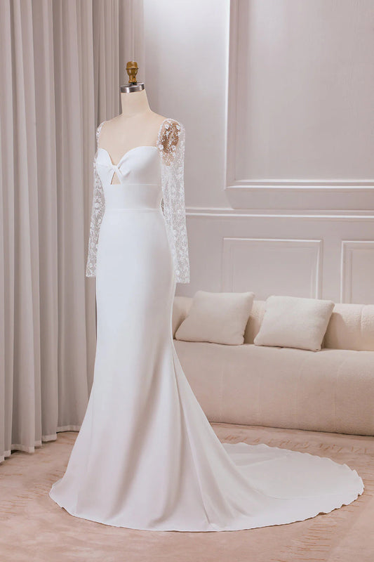 Regular price $169.99 USDRegular priceUnit price / per$249.99 USDSale price $169.99 USDSaleNeck Satin Trumpet Sweetheart Wedding Dress with Lace Long Sleeves White