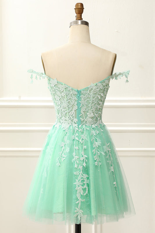 Off The Shoulder Corset Cute Homecoming Dress With Appliques Short