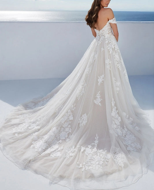 Regular price $159.80 USDRegular priceUnit price / per$239.80 USDSale price $159.80 USDSaleOff-The-Shoulder Tulle Lace Wedding Dress With Appliques Lace Floor Length Elegant