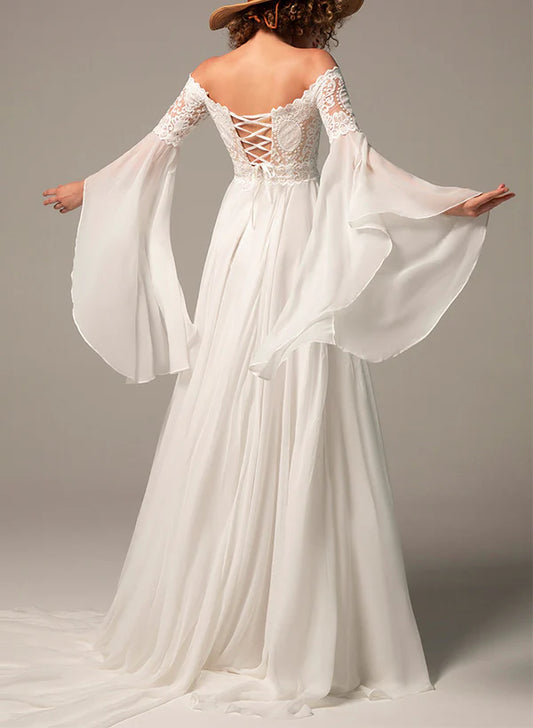 Regular price $176.99 USDRegular priceUnit price / per$256.99 USDSale price $176.99 USDSaleOff-The-Shoulder A-Line Wedding Dress With Long Sleeves In Chiffon/Lace Floor Length Elegant