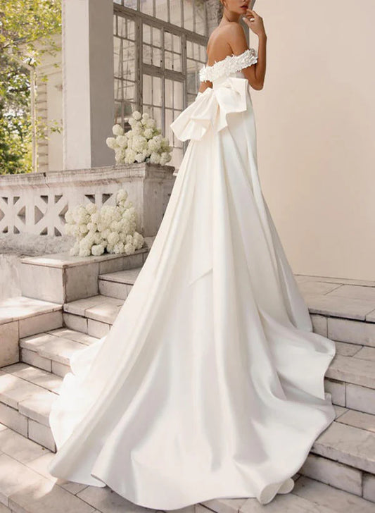 Regular price $179.80 USDRegular priceUnit price / per$259.80 USDSale price $179.80 USDSaleOff-The-Shoulder Sleeveless Satin Sweep Train Wedding Dress With Bow(s) Floor Length Simple