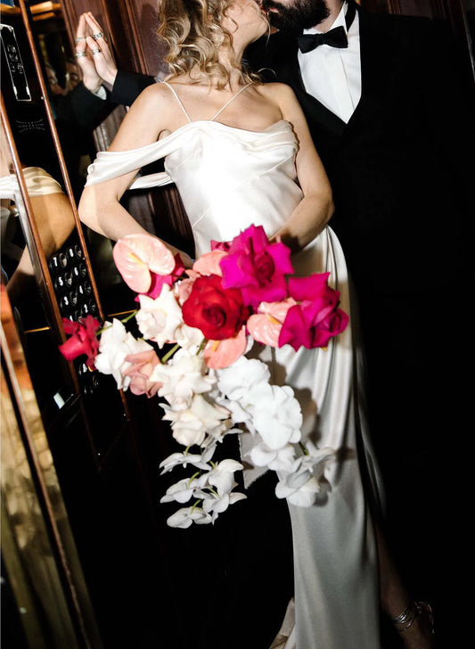Regular price $115.99 USDRegular priceUnit price / per$195.99 USDSale price $115.99 USDSaleOne-Shoulder Sheath Column Slit Silk Like Satin Wedding Dresses Simple Solid Color