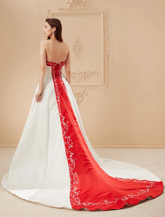 Open Back Wedding Dresses Sweep / Brush Train Ball Gown Strapless Strapless Satin With Embroidery