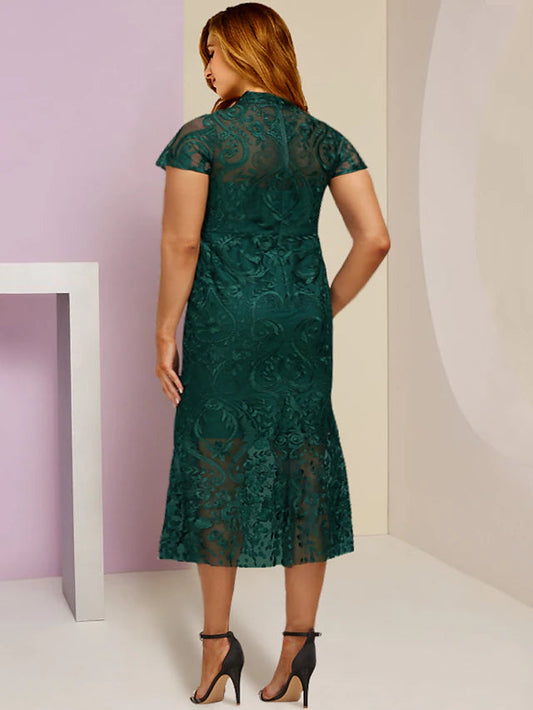 Regular price $119.99 USDRegular priceUnit price / per$199.99 USDSale price $119.99 USDSalePlus Size Curve Mother of the Bride Dress Wedding Guest Vintage Elegant High Neck Tea Length Lace Short Sleeve