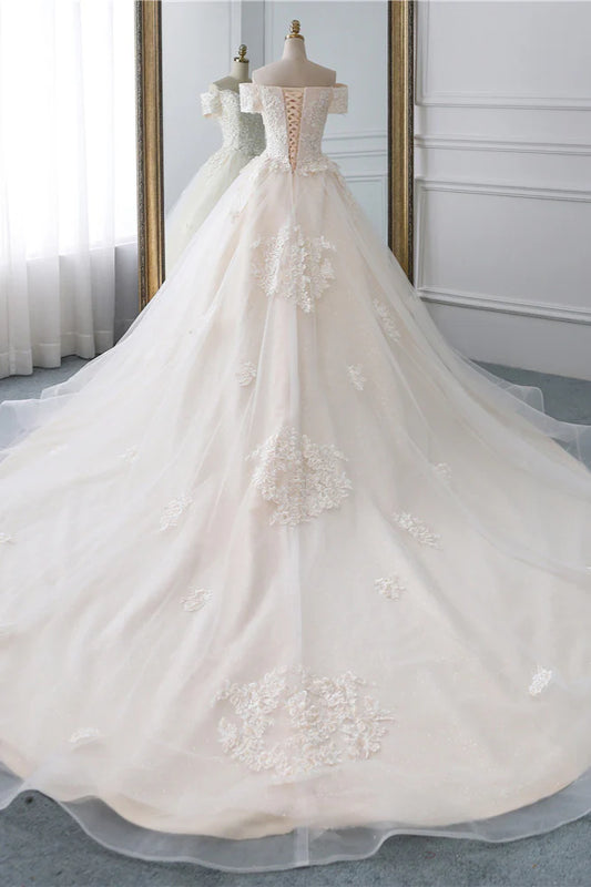 Princess Off The Shoulder Tulle Wedding Dress With Lace Appliques Elegant Beautiful