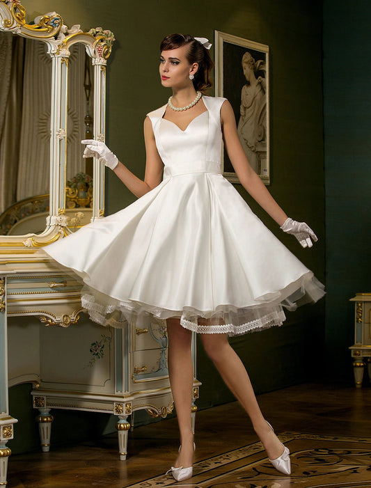 Regular price $125.99 USDRegular priceUnit price / per$205.99 USDSale price $125.99 USDSaleReception Vintage 1940s / 1950s Little White Dresses Wedding Dresses A-Line Sweetheart Cap Sleeve Knee Length Satin Bridal Gowns With Lace