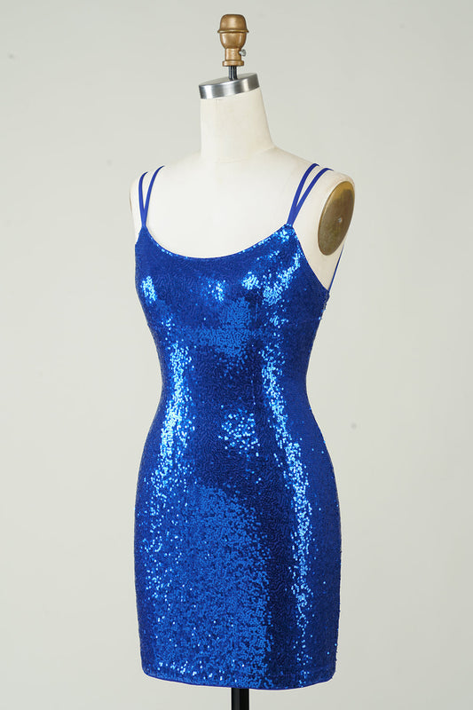 Regular price $128.90 USDRegular priceUnit price / per$208.90 USDSale price $128.90 USDSaleRoyal Blue Sheath Spaghetti Straps Tight Sequins Backless Short Homecoming Dress Sparkly