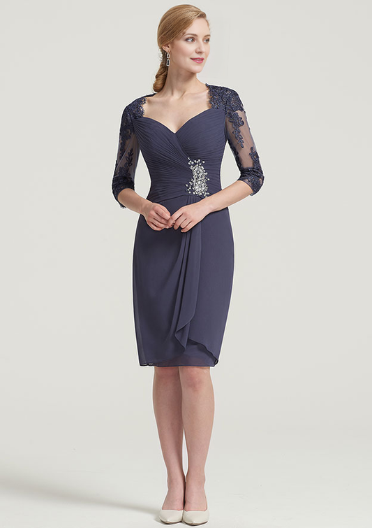 Regular price $135.90 USDRegular priceUnit price / per$215.90 USDSale price $135.90 USDSaleScalloped Neck 34 Sleeve Knee-Length Chiffon Mother of the Bride Dress With Pleated Beading Appliqued