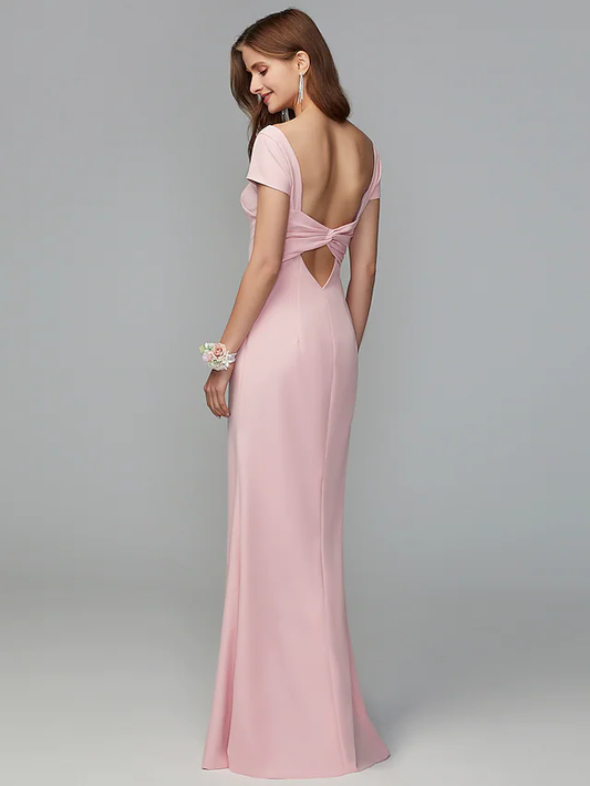 Regular price $123.99 USDRegular priceUnit price / per$203.99 USDSale price $123.99 USDSaleScoop Neck Floor Length Jersey Bridesmaid Dress with Criss Cross Draping Open Back Pure Color