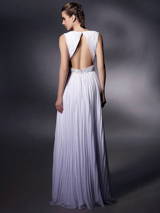 Regular price $115.99 USDRegular priceUnit price / per$195.99 USDSale price $115.99 USDSaleSheath / Column Celebrity Style Dress Prom Floor Length Sleeveless Plunging Neck Chiffon with Beading