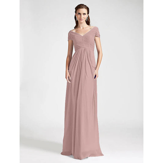 Regular price $121.99 USDRegular priceUnit price / per$201.99 USDSale price $121.99 USDSaleSheath / Column Bridesmaid Dress V Neck / Off Shoulder Short Sleeve Open Back Floor Length Chiffon with Criss Cross