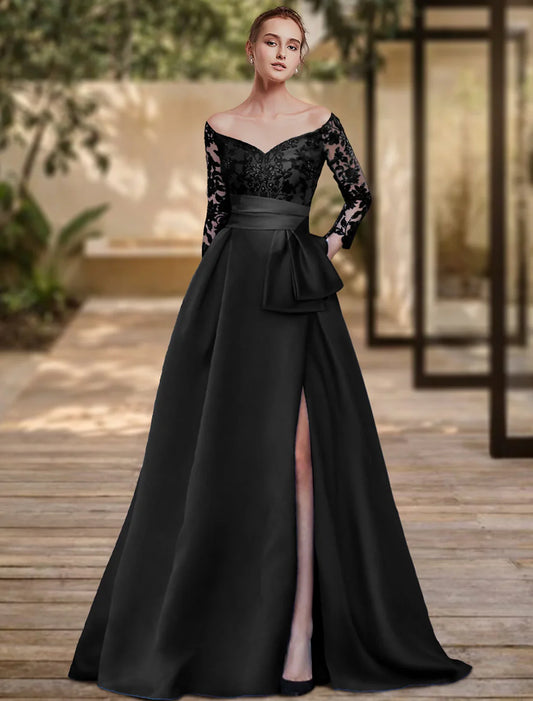 Regular price $139.99 USDRegular priceUnit price / per$219.99 USDSale price $139.99 USDSaleSheath / Column Evening Gown High Split Dress Formal Wedding Guest Sweep / Brush Train 3/4 Length Sleeve Off Shoulder Charmeuse with Bow(s)