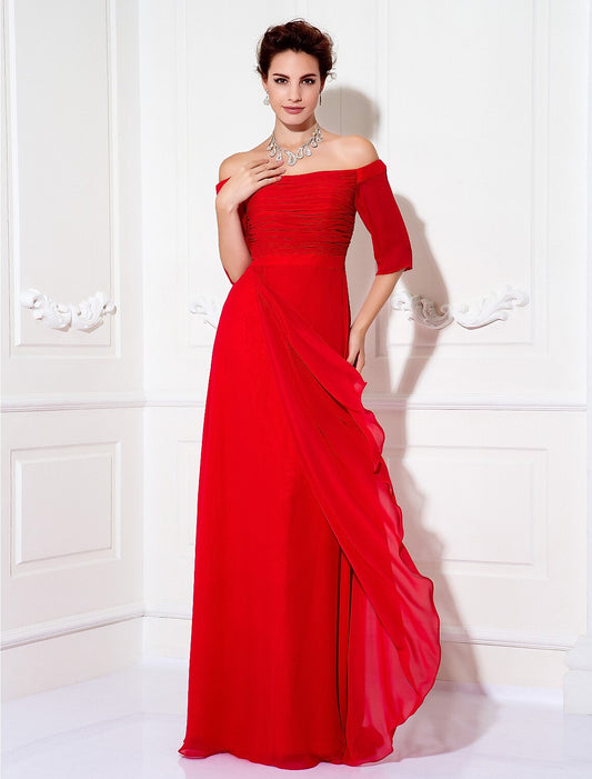 Regular price $129.99 USDRegular priceUnit price / per$209.99 USDSale price $129.99 USDSaleSheath / Column Minimalist Dress Wedding Guest Formal Evening Sweep / Brush Train Half Sleeve Off Shoulder Bridesmaid Dress Chiffon with Ruched