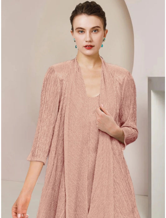 Regular price $119.99 USDRegular priceUnit price / per$199.99 USDSale price $119.99 USDSaleTwo Piece Mother of the Bride Dress Wedding Guest Simple Elegant V Neck Knee Length Chiffon 3/4 Length Sleeve
