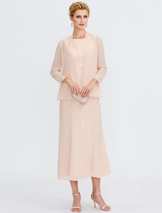 Regular price $129.99 USDRegular priceUnit price / per$209.99 USDSale price $129.99 USDSaleTwo Piece Sheath / Column Mother of the Bride Dress Formal Wedding Guest Party Elegant Scoop Neck Tea Length Chiffon Lace 3/4 Length Sleeve Jacket Dresses