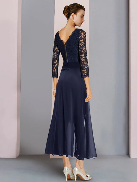 Regular price $139.99 USDRegular priceUnit price / per$219.99 USDSale price $139.99 USDSaleTwo Piece Sheath / Column Mother of the Bride Dress Formal Wedding Guest Elegant V Neck Knee Length Chiffon Lace 3/4 Length Sleeve