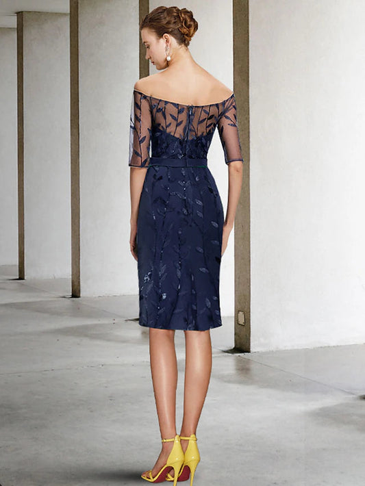 Regular price $165.99 USDRegular priceUnit price / per$245.99 USDSale price $165.99 USDSaleTwo Piece Sheath / Column Mother of the Bride Dress Formal Wedding Guest Sparkle & Shine Elegant Off Shoulder Knee Length Chiffon Lace Sequined Half Sleeve with Bow(s)