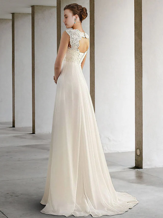 Regular price $161.99 USDRegular priceUnit price / per$241.99 USDSale price $161.99 USDSaleWedding Dresses Scoop Neck Chiffon Lace Sleeveless Simple Sexy with Pleats