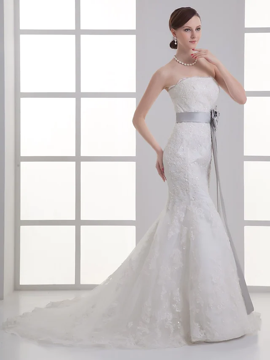 Regular price $259.99 USDRegular priceUnit price / per$339.99 USDSale price $259.99 USDSaleWedding Dresses Strapless Chapel Train Lace Satin Strapless with Sashes Ribbons Bow(s)