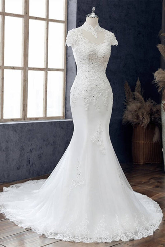 Regular price $198.99 USDRegular priceUnit price / per$278.99 USDSale price $198.99 USDSaleWhite Appliques High Collar Cutout Mermaid Wedding Dress Long