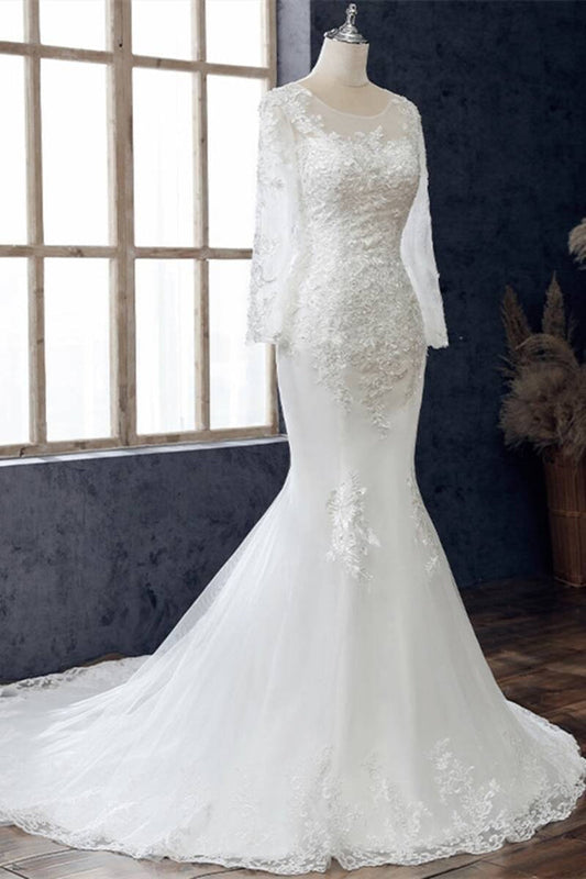 Regular price $248.99 USDRegular priceUnit price / per$328.99 USDSale price $248.99 USDSaleWhite Beaded Embroidered Round Neck Long Sleeve Wedding Dress Beautiful