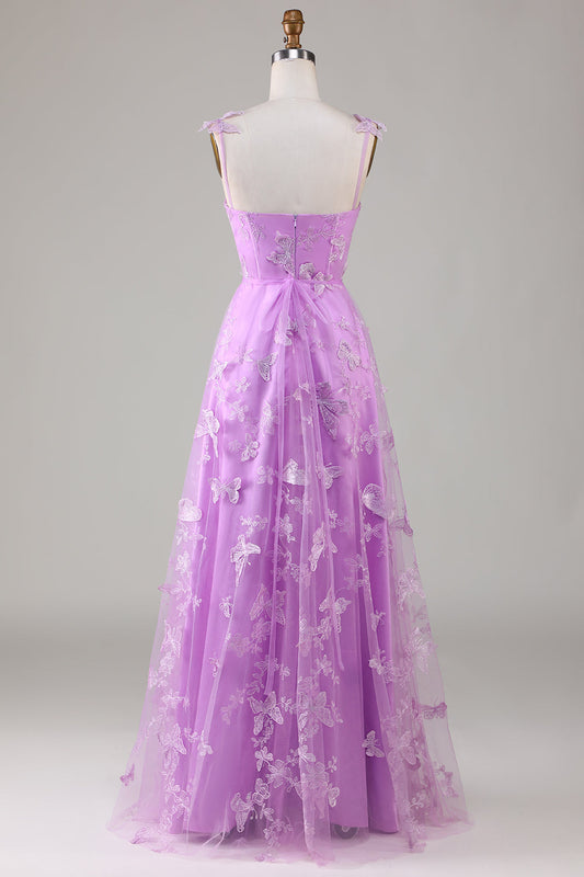A Line Square Neck Corset Prom Dress with 3D Butterflies Floor Length Charming Evening Party Dress