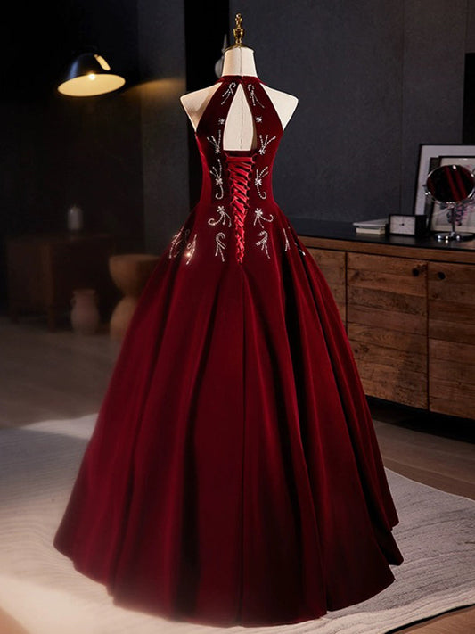 A-Line Velvet V-neckline Sleeveless Long Party Dress Prom Dresses Bridesmaid Dress Evening Dress