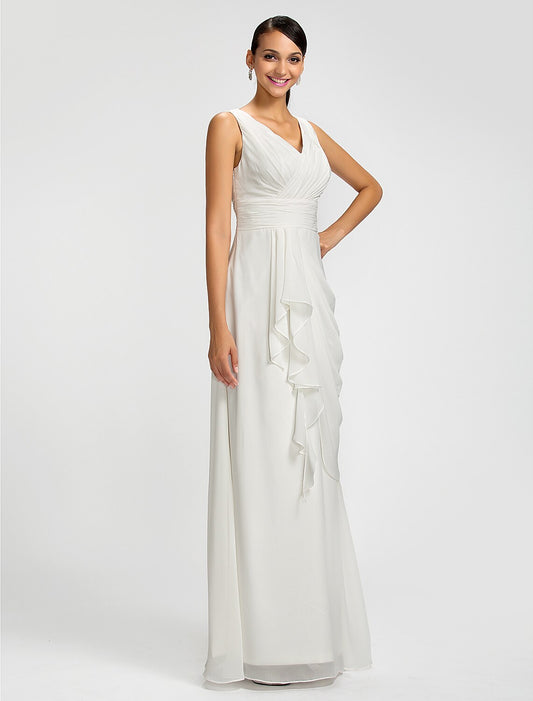 Regular price $122.99 USDRegular priceUnit price / per$202.99 USDSale price $122.99 USDSaleSheath / Column Bridesmaid Dress High Neck Sleeveless Vintage Inspired Floor Length Chiffon with Ruched Ruffles