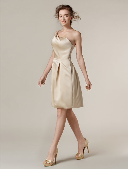 Regular price $121.99 USDRegular priceUnit price / per$201.99 USDSale price $121.99 USDSaleA-Line / Princess One Shoulder Short Taffeta Bridesmaid Dress with Pleats pure color