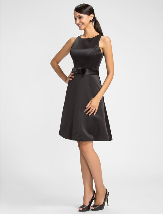 Regular price $117.99 USDRegular priceUnit price / per$197.99 USDSale price $117.99 USDSaleA-Line Jewel Neck Knee Length Satin Bridesmaid Dress with Bow(s) / Sash