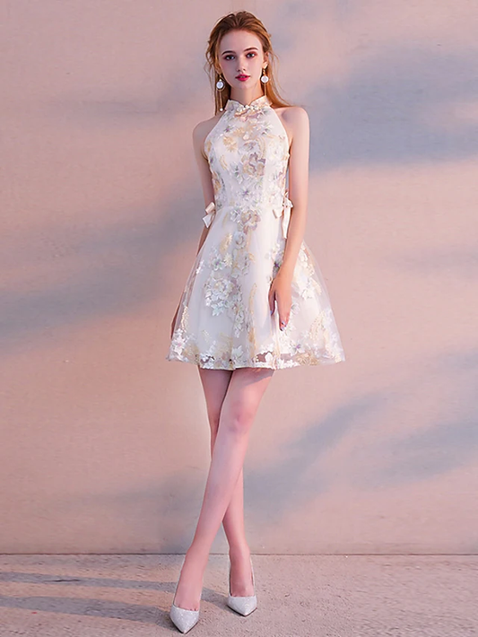 Regular price $145.99 USDRegular priceUnit price / per$225.99 USDSale price $145.99 USDSaleA-Line Wedding Guest Dresses Elegant Dress Cocktail Party Tea Length Sleeveless Halter Chiffon