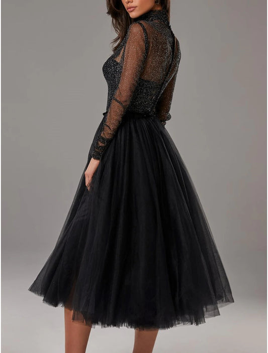 Regular price $112.99 USDRegular priceUnit price / per$192.99 USDSale price $112.99 USDSaleA-Line Cocktail Dresses Vintage Dress Homecoming Knee Length Long Sleeve High Neck Wednesday Addams Family Tulle with Pleats