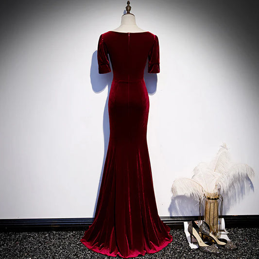 Regular price $139.90 USDRegular priceUnit price / per$219.90 USDSale price $139.90 USDSaleWine Red Velvet Mermaid Long Evening Party Dresses Formal Dresses Short Sleeves